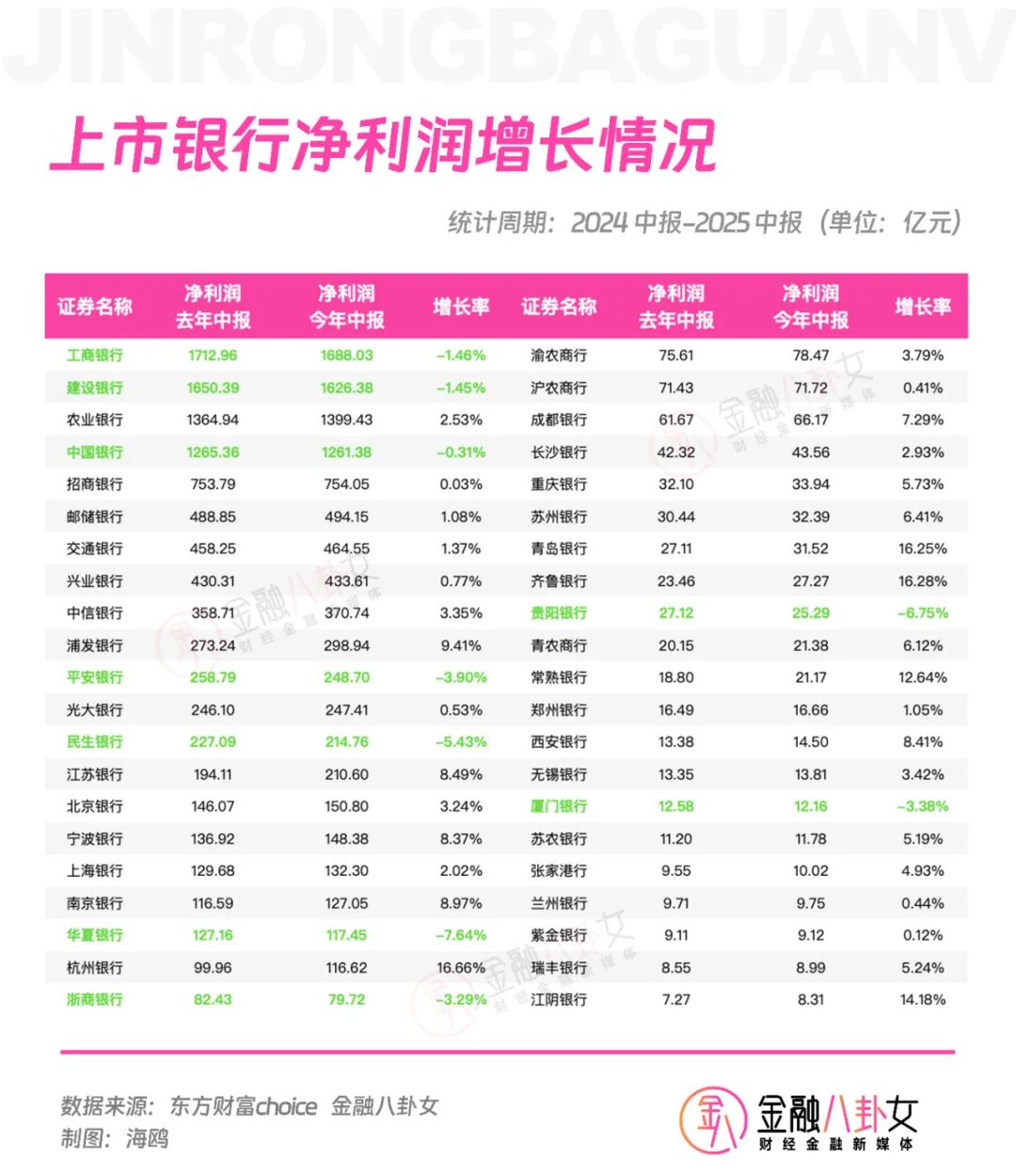 今年中报显示,上市银行的营收整体增长,去年总额合计2.89万亿,今年合计为2.92万亿,六大行全部实现了小幅增长,但有12家上市银行营收是下滑的。